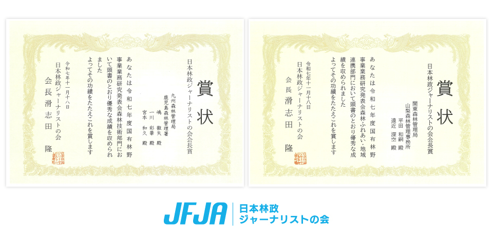 令和7年度国有林野事業業務研究発表会における日本林政ジャーナリストの会会長賞の授与について
