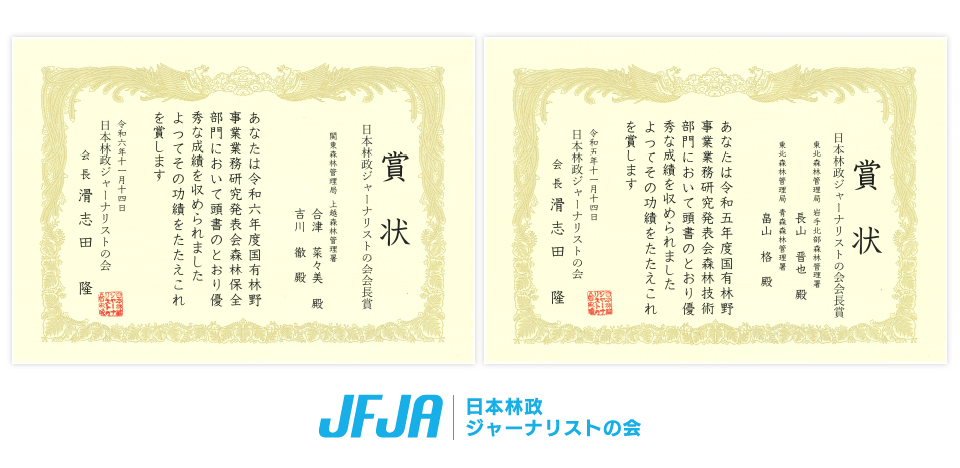 日本林政ジャーナリストの会会長賞を受賞しました。